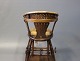 Beskrivelse: Antik barnestol i poleret træ fra omkring 1860. Stolen kan laves om til en lav barnestol med hjul frem for den høje.