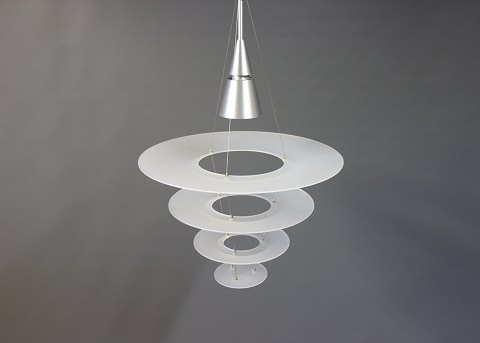 Beskrivelse: Enigma 425 pendel design af Shoichi Uchiyama og fremstillet af Louis Poulsen. Pendlen er i børstet aluminium og mat akryl.