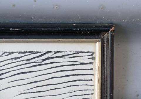 Beskrivelse: Træsnit med motiv snørestøvler.