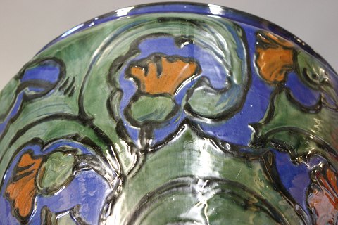 Beskrivelse: Stor Keramik gulvvase i flotte mørke farver fra Danico. Vasen er fra 1930erne.