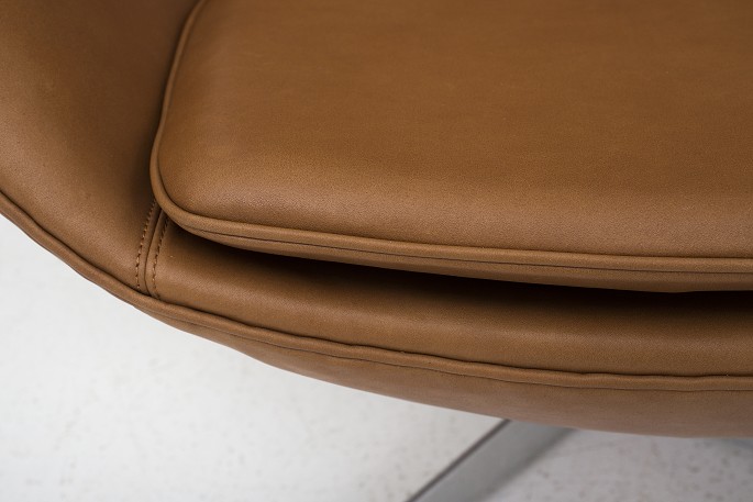 AJ 3316 - Nybetrukket "Ægget" i KLASSIK Cognac-læder med gammel fod. Vist med læderfedt.