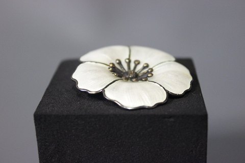 Blomsterbroche i 925 sterling sølv og hvid emalje, stemplet G.H.