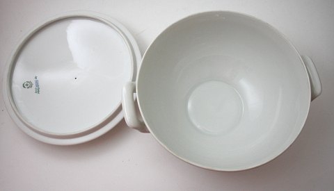 Beskrivelse: Royal Copenhagen, Tunna designet af Thorkild Olsen. Stor terrin med låg. Dek.nr. 1277/14093. I. sortering. Højde 12 cm. Med låg 16,5 cm. Diameter 23,5 cm. Pris: SOLGT