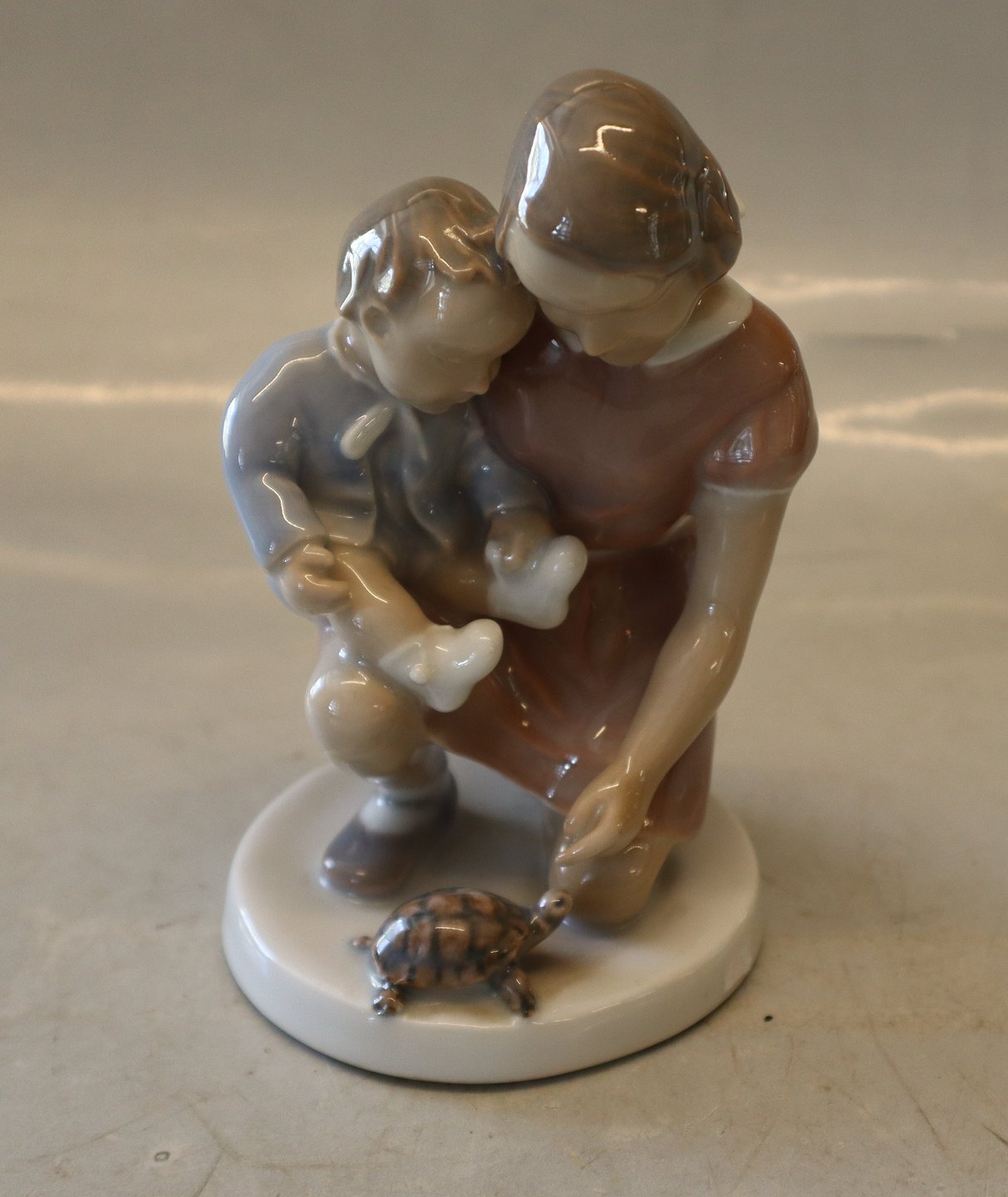 Beskrivelse: Bing & Grøndahl B&G 2277 Mor og barn ser på skildpadde 11 cm I fin og hel stand.