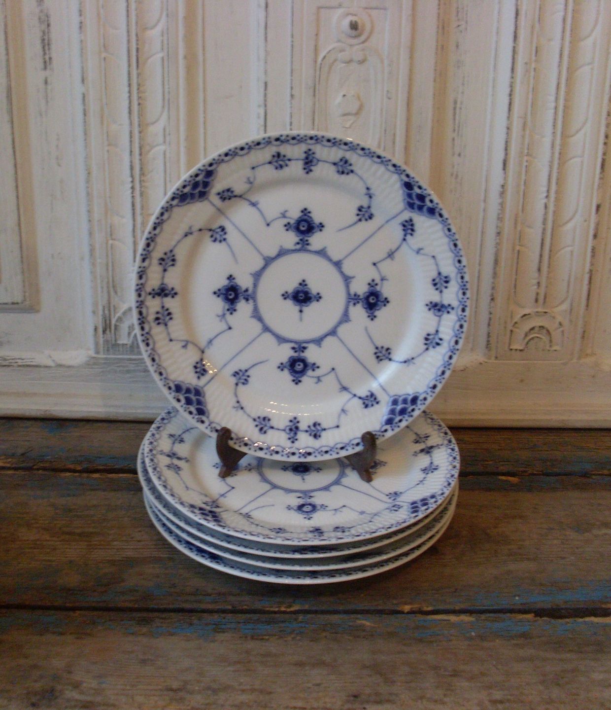 Royal Copenhagen Musselmalet halvblonde hel flad middags tallerken no. 577