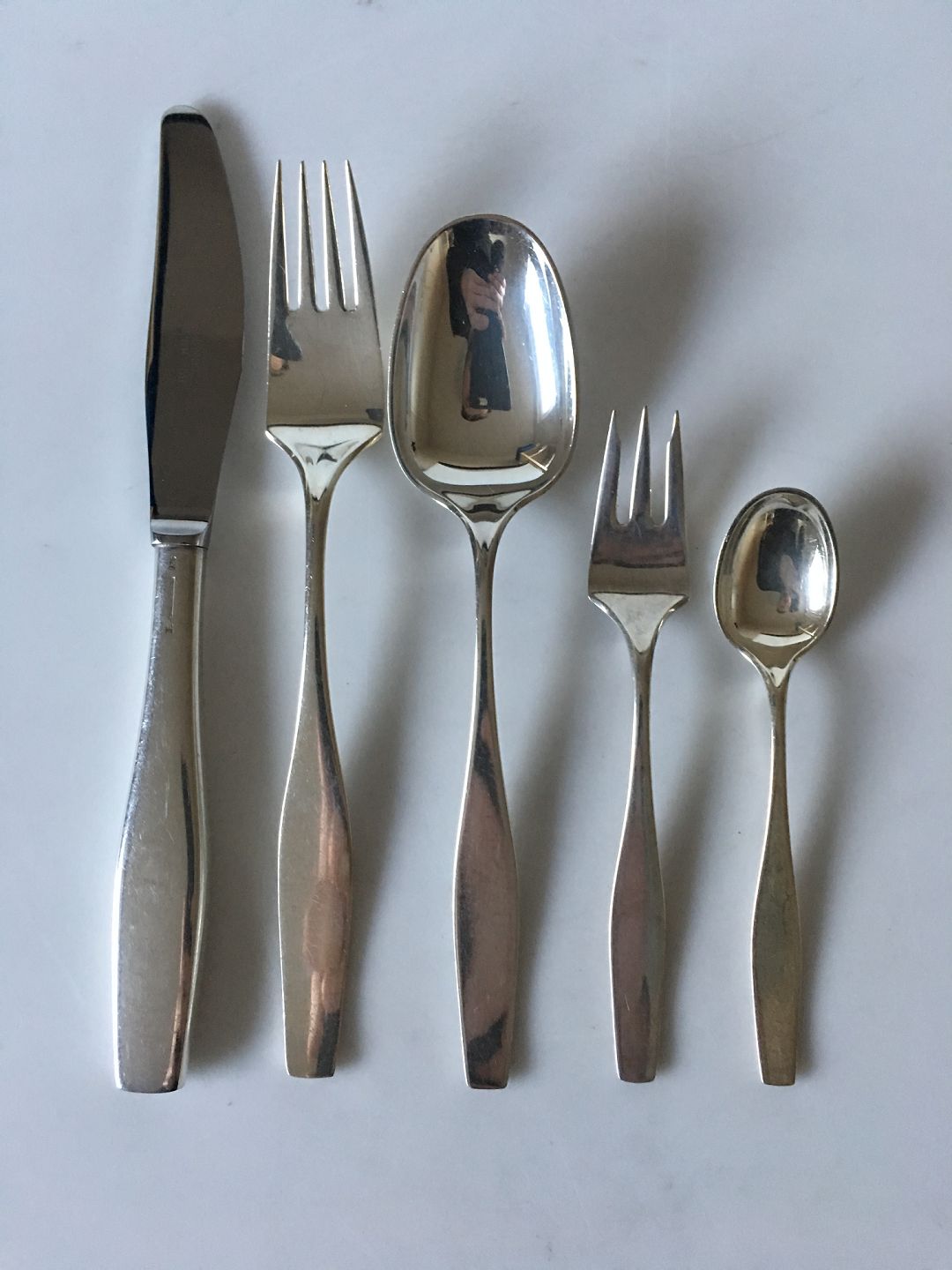 Description: Hans Hansen Sterling Silver Charlotte Flatware Set for 12 People. 60 Pieces. The set consists of: