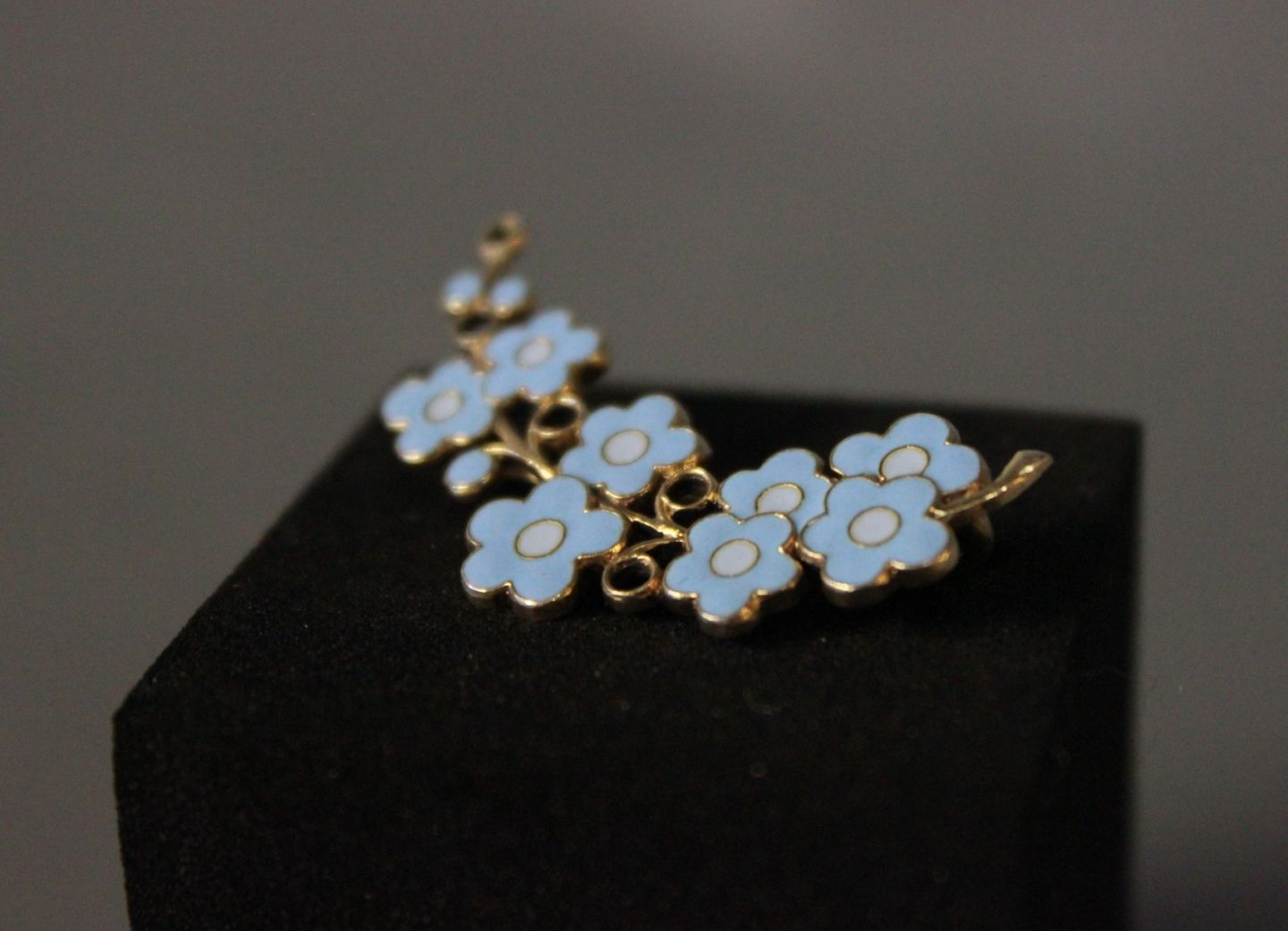 Fin blomsterbroche med blå emalje og i forgyldt 925 sterling sølv.