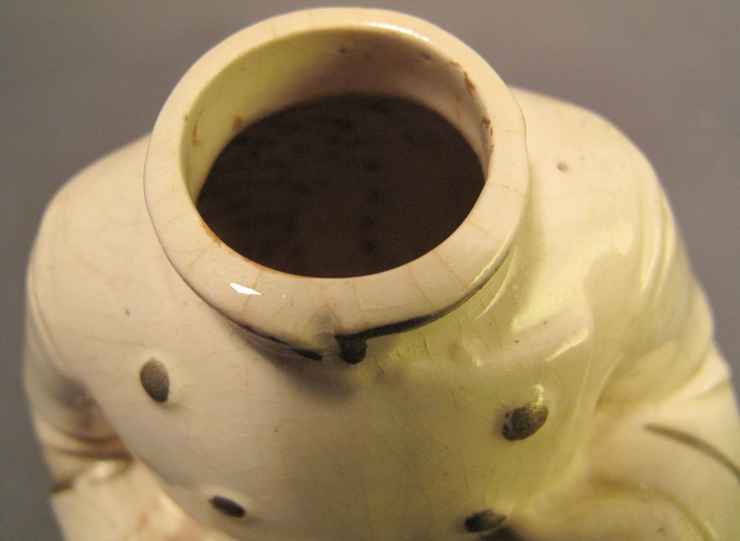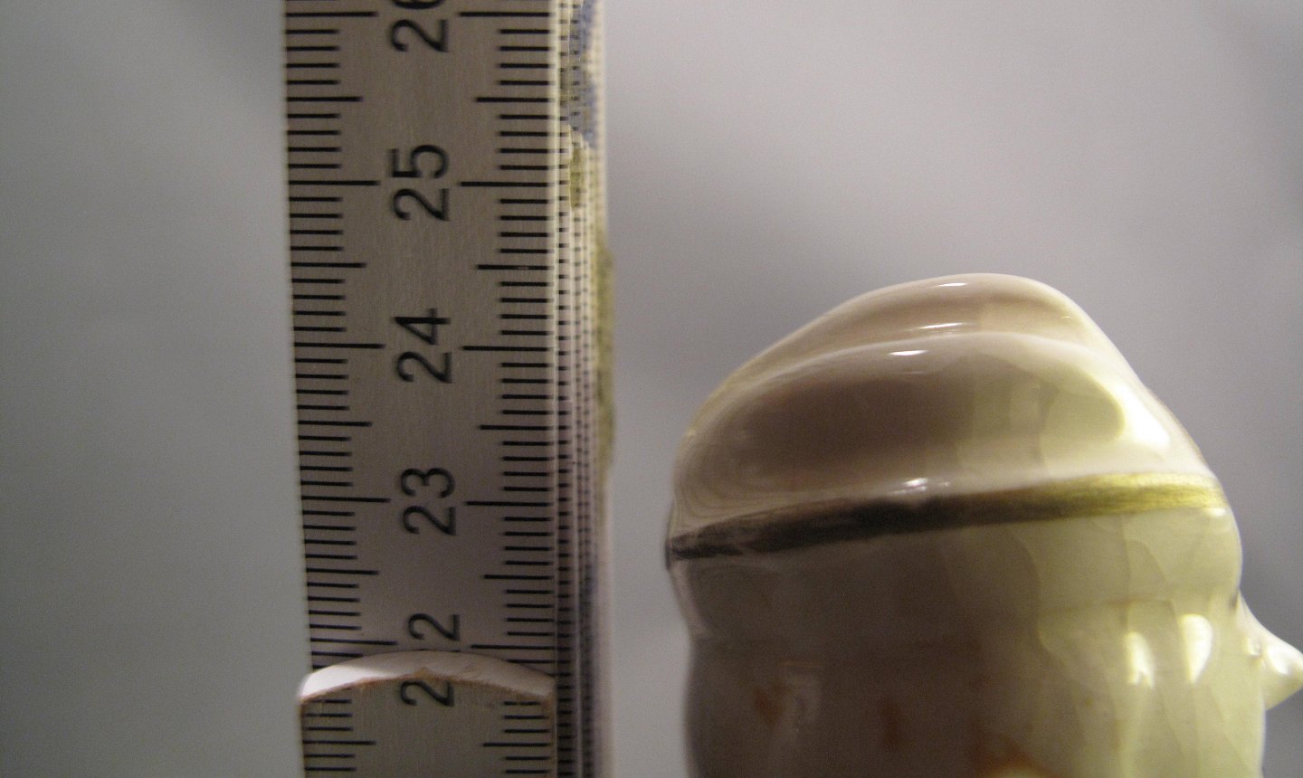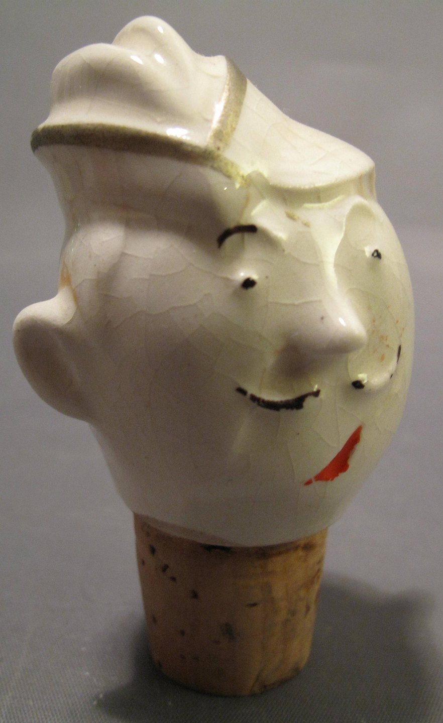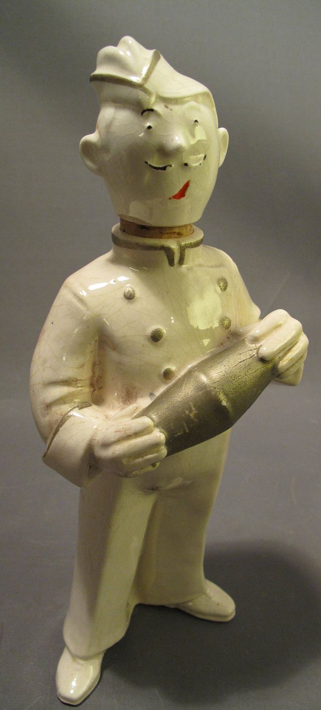 Beskrivelse: Bartender karaffel / flaske med hoved som prop. Han har aldersrelateret slitage.