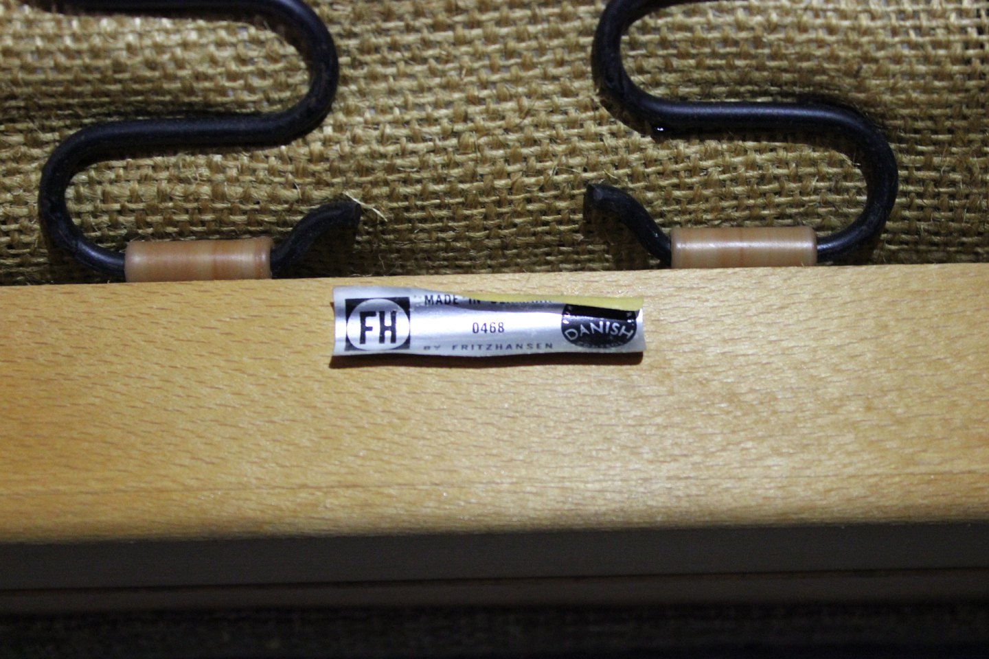 Beskrivelse: Den tre-personers DUX sofa i grønt uld, designet af Folke Ohlsson og produceret af Fritz Hansen i 1960, er et fremtrædende eksempel på skandinavisk møbeldesign fra midten af det 20. århundrede.