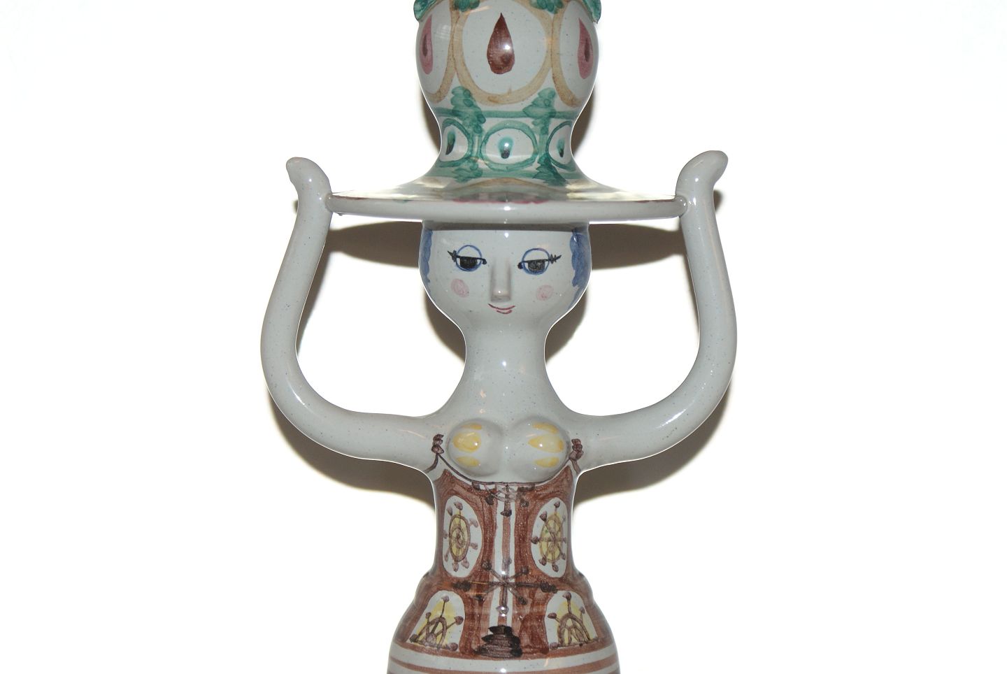Description: Pottery figure, Hats Dame multicolor ceramics