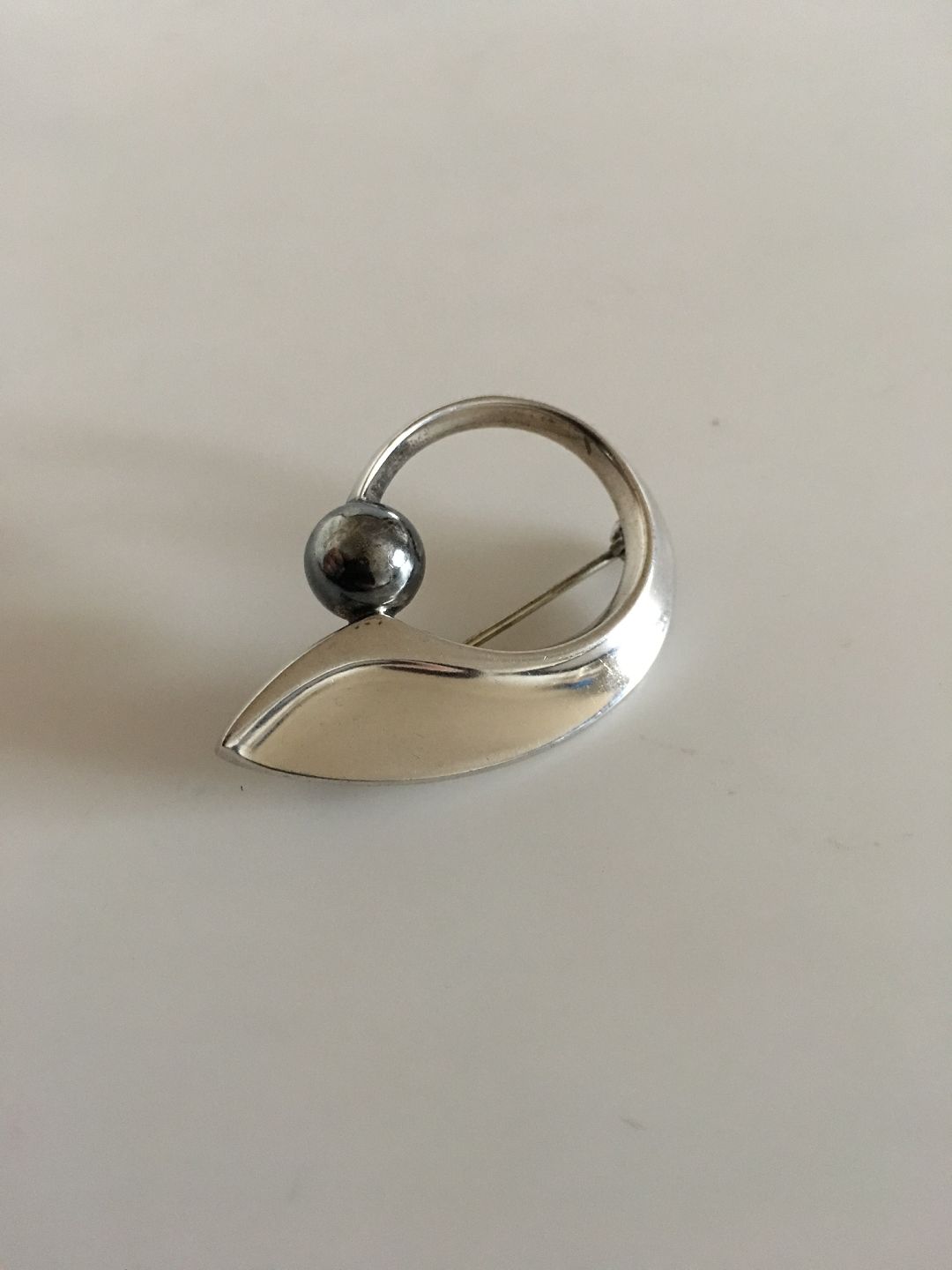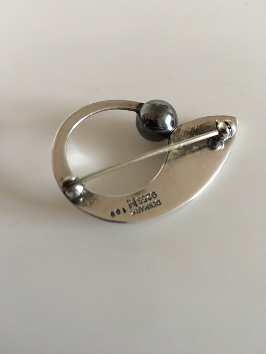 Hans Hansen Sterling Sølv Broche med Oxideret Sølvsten No 109