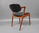 Beskrivelse: Et sæt af 8 spisestuestole, model 42, designet af Kai Kristiansen og fremstillet hos Schou Andersen i 1960erne. Stolene er af teak og polstret i sort klassisk læder.