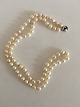 Beskrivelse: Georg Jensen Perlehalskæde med Lås af Hvidguld. Kæden er 63 cm L. Perlerne måler 0.6 mm. Vejer 49 gram. I god stand.