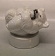 Kongelig Dansk Stentøj 0234 Kgl. (1003234) Hvid isbjørneunge på ryggen på rund sokkel 8.5 x 9 cm Knud Kyhn (21434) (0334)
