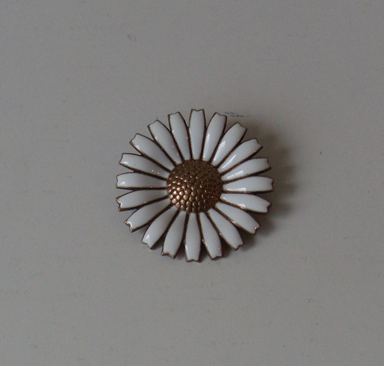 A.Michelsen Marguerit broche i forgyldt sterlingsølv og emalje 4,2cm.