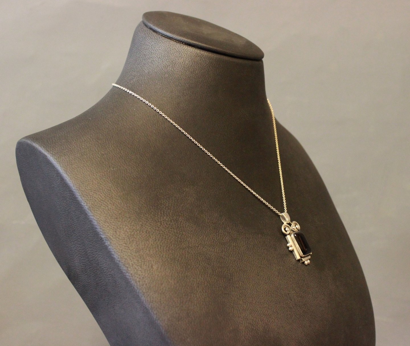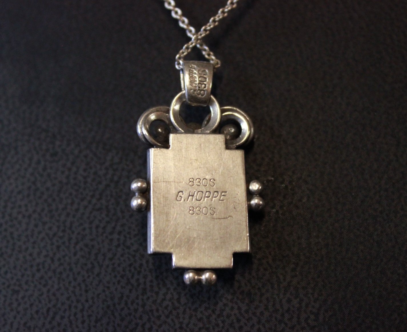 Vedhæng i 830 sølv med sort onyx sten, stemplet G.J. Hoppe.
