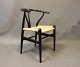 Beskrivelse: Et sæt af 4 Y-stole, model CH24, designet af Hans J. Wegner i 1950 og fremstillet hos Carl Hansen & Søn fra slutningen af 1980erne. Stolene er med fletsæde og sortmalet ask.
