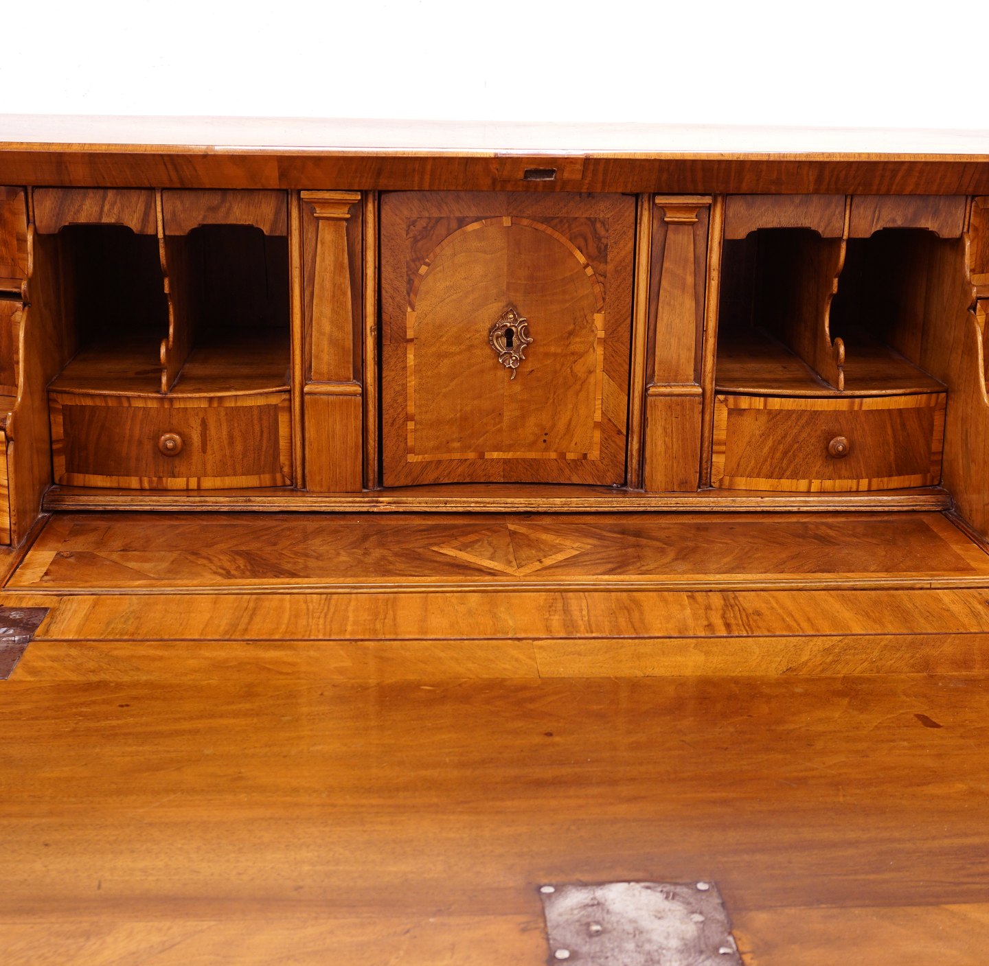 Chatol i nøddetræ med trappeskuffer, midterlåge og hemmelige rum. Slesvig-holsten ca. år 1750. H: 105cm. B: 112cm. D: 88cm