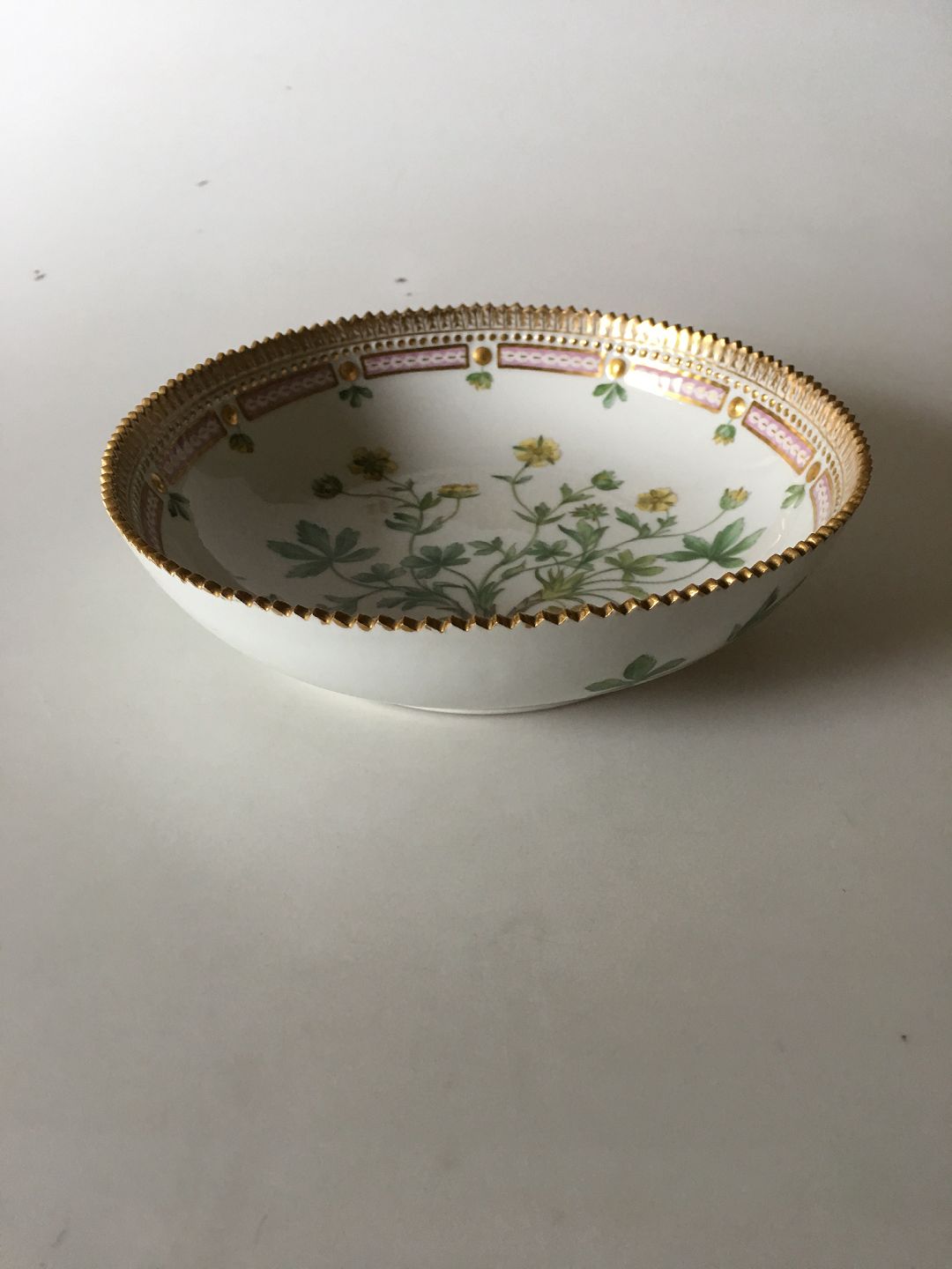 Beskrivelse: Royal Copenhagen Flora Danica Skål No. 3503. Latinsk Navn: Potentilla Verna. 5.5 cm Høj. 20 cm diameter. I perfekt stand.