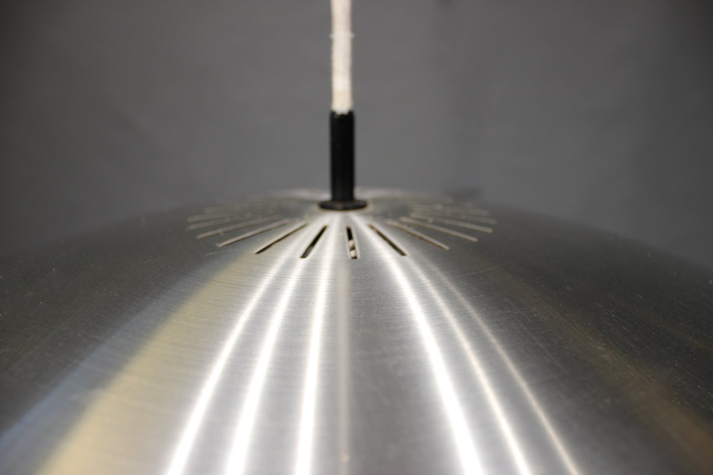 Diskos pendel i stål af Jo Hammerborg for Fog og Mørup fra 1960erne.
