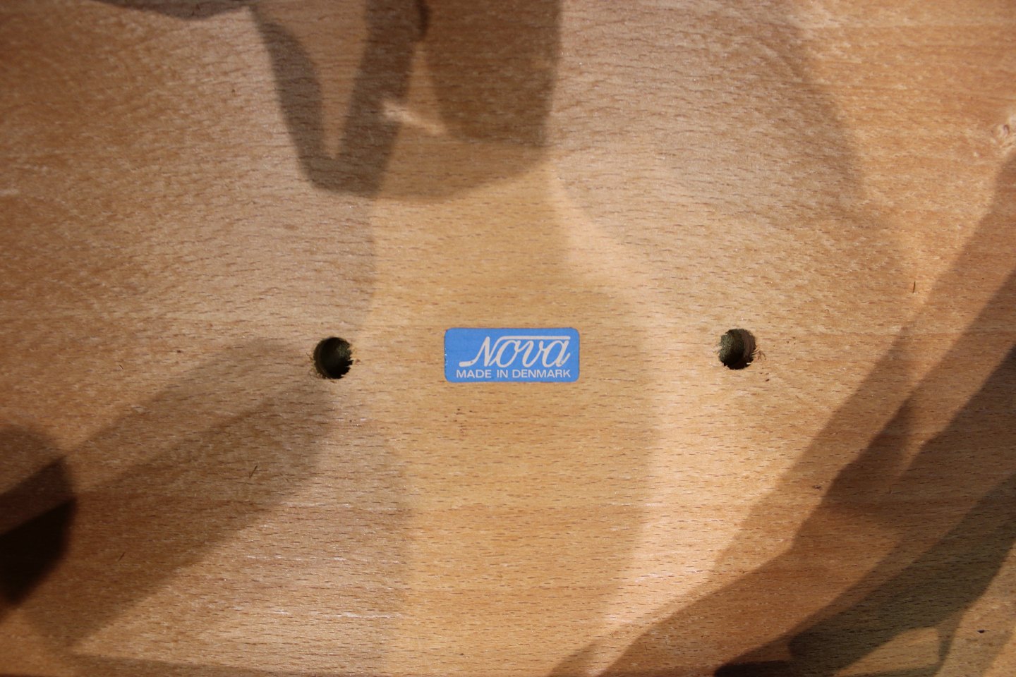 Beskrivelse: Et sæt af 4 spisestuestole i teak og lyst uldbetræk af dansk design fra Nova Møbelfabrik og 1960erne. Stolene er i flot brugt stand.
