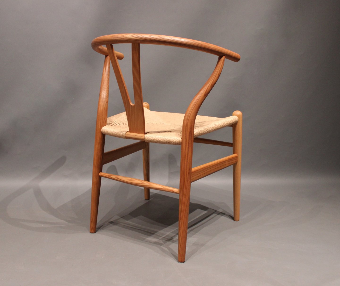 Y-stol, model CH24, jubilæumsmodel i anledning af Hans J. Wegners fødselsdag d. 2 april, i oliebehandlet elm og naturflet.