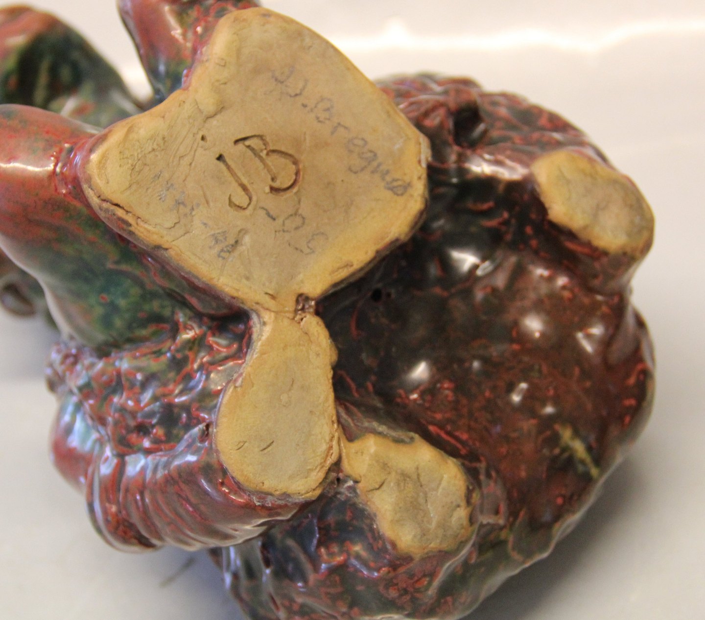 Beskrivelse: Brun glaseret lustre Jens Jacob Bregnøe Keramisk Kvindebuste med kurv. Eget værksted 20 x 23 cm Fin stand -