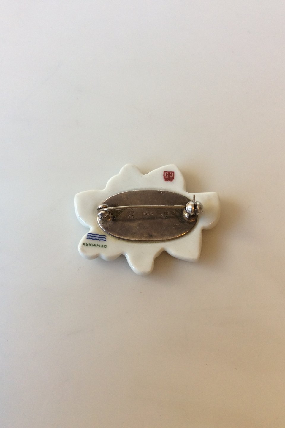 Royal Copenhagen Hvid Hjerte Broche af porcelæn og Anton Michelsen Sterling Sølv