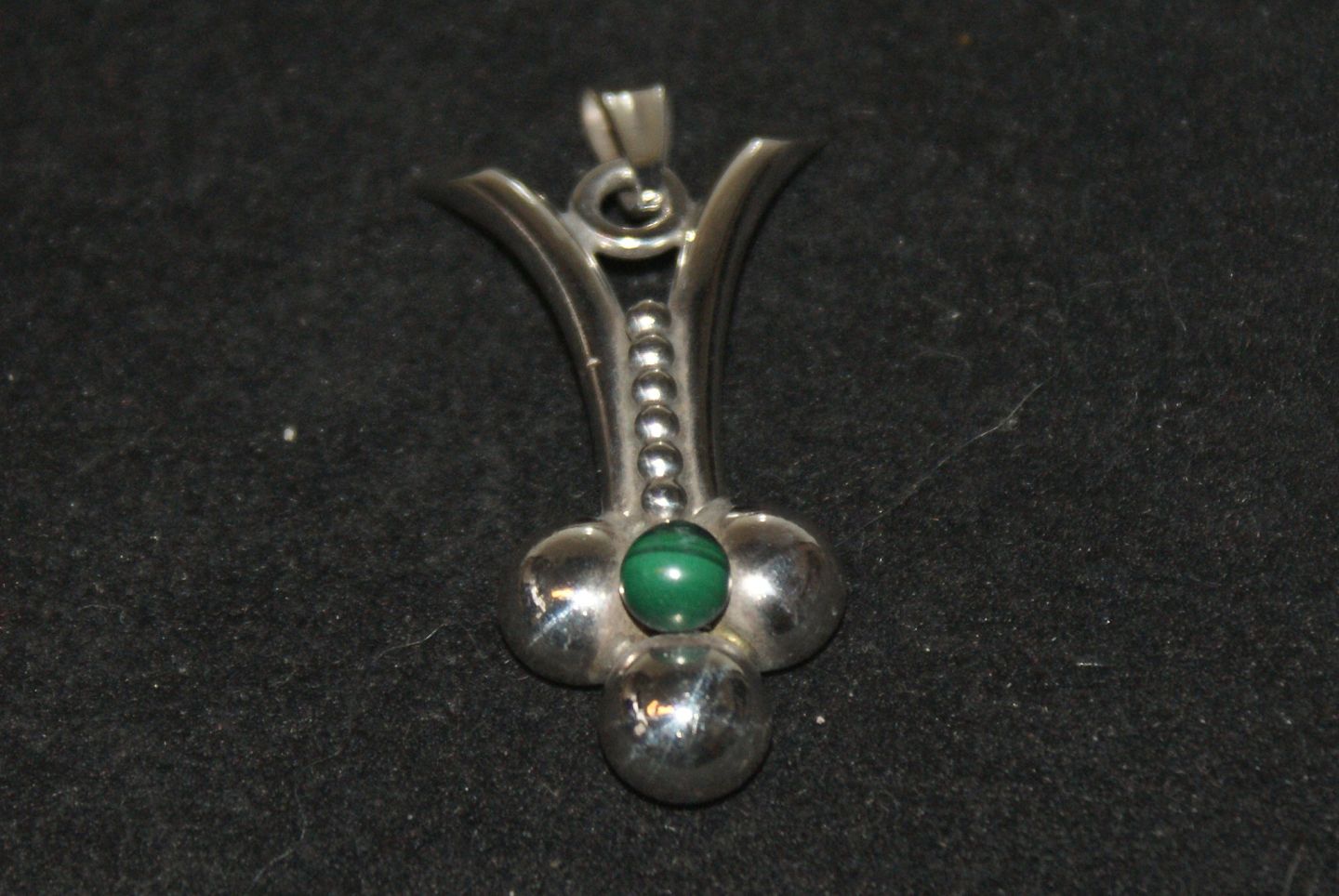 Beskrivelse: Vedhæng med grøn sten, Sterlingsølv