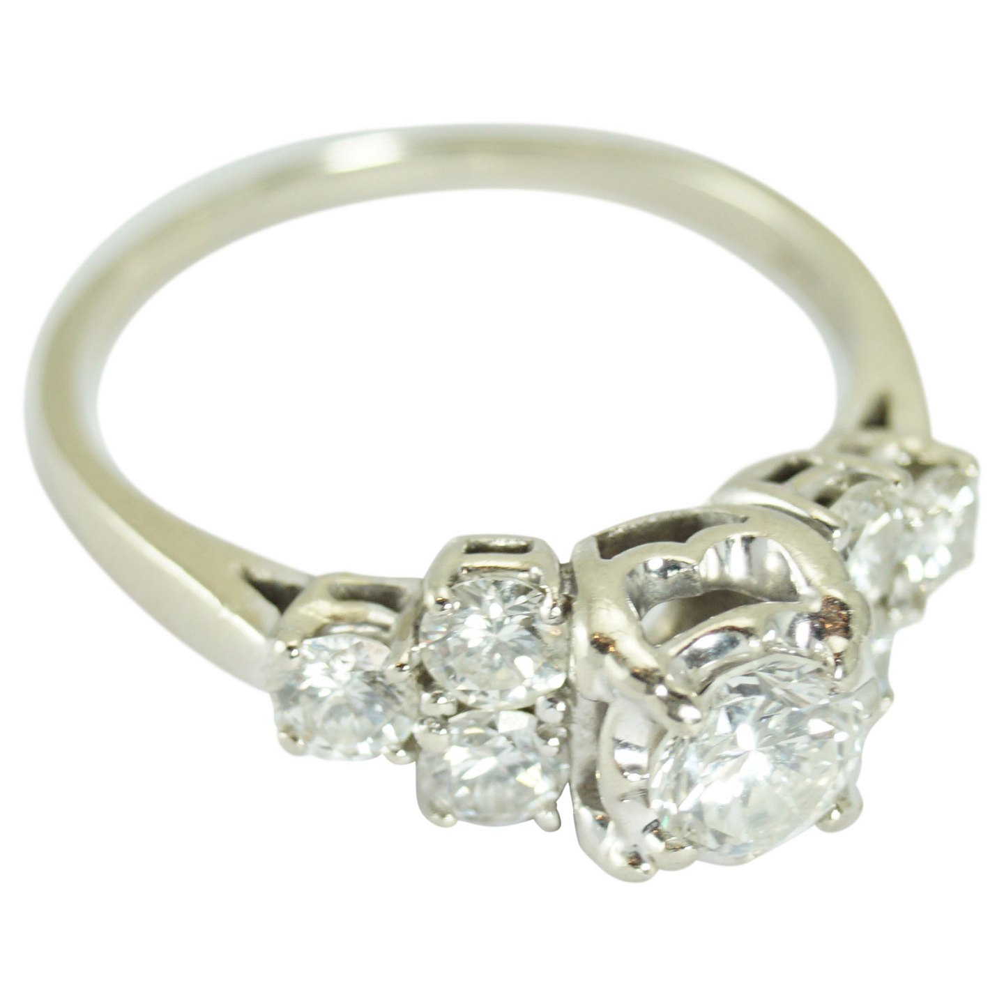 A brillant ring set with a brillant and 6 smaller brillants, total app. 1.63 ct. mounted in 18k white gold.