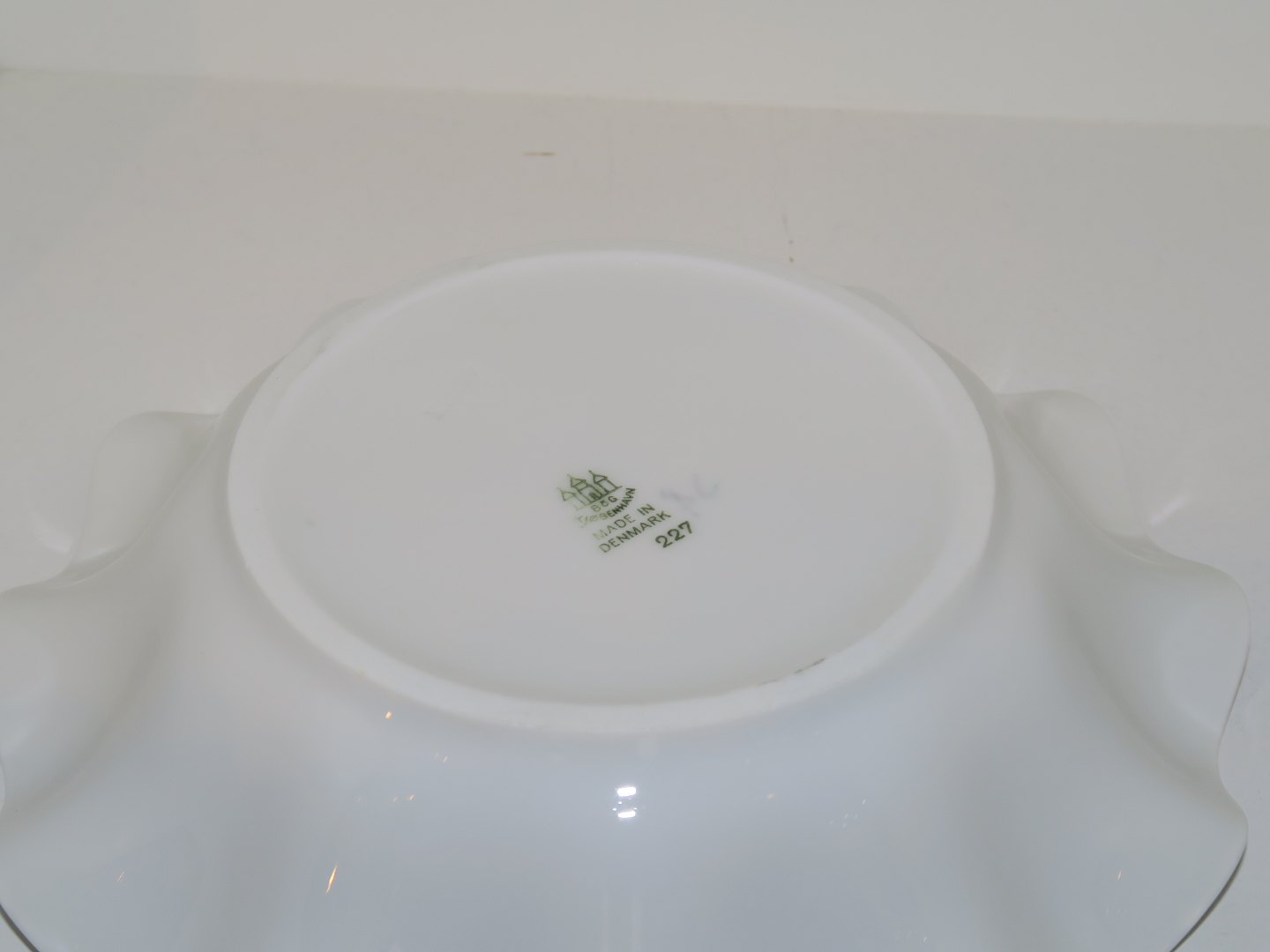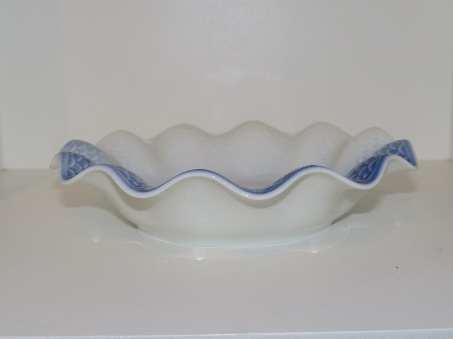 Beskrivelse: Bing & Grøndahl Måge uden guldkant, bølgeformet skål.