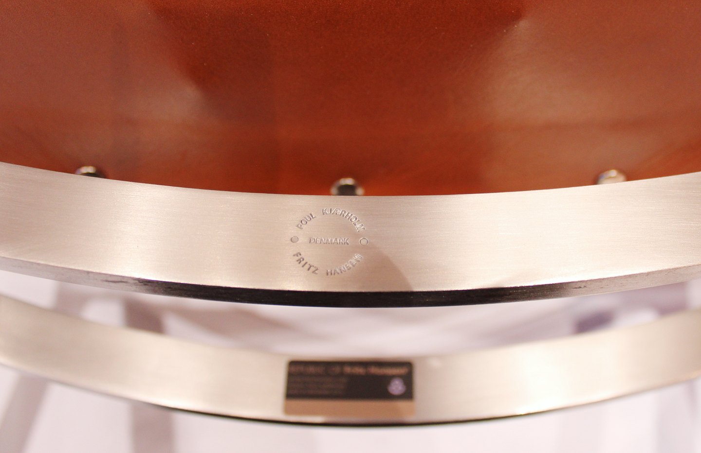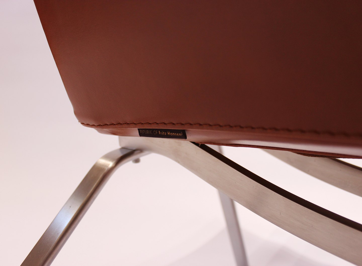 Beskrivelse: Hvilestol, model PK22, designet af Poul Kjærholm i 1955 og fremstillet hos Fritz Hansen i 2016. Stolen er med original polstring i valnød elegance læder og stel af krom. Stolen er en udstillingsmodel.