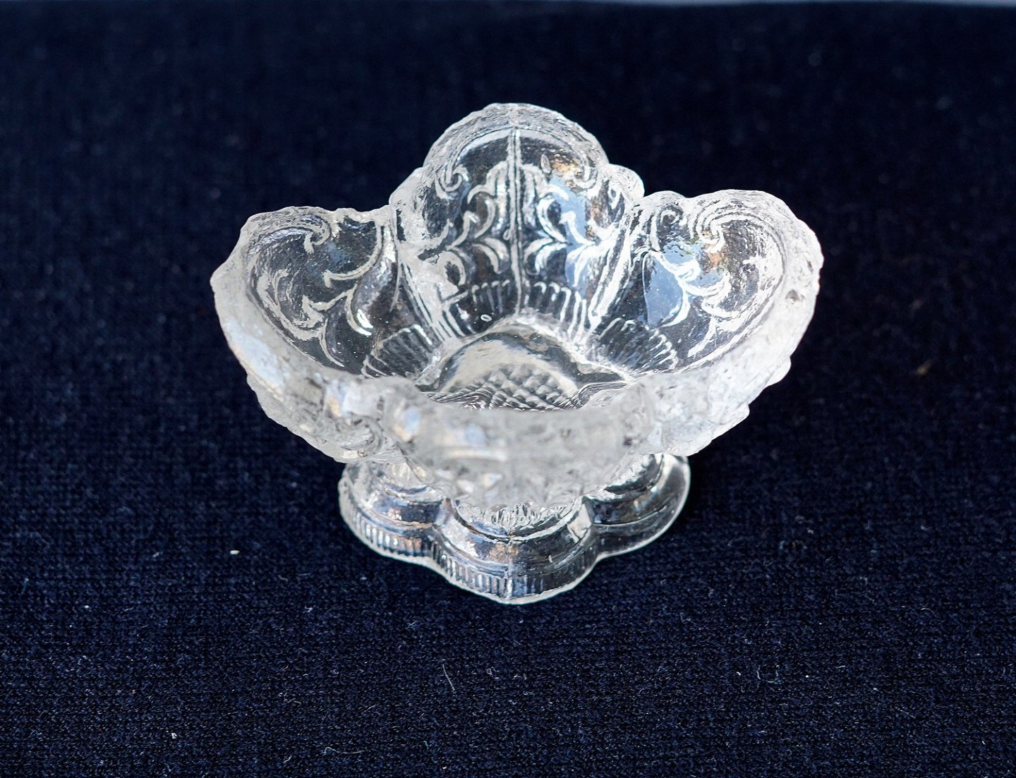 Beskrivelse: Saltkar i presset glas, fra ca 1867