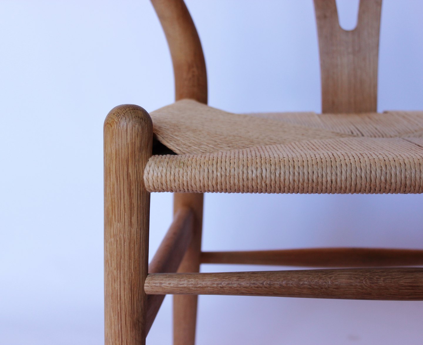 Beskrivelse: Sæt af 8 Y-stole, model CH24, i eg og naturflet designet af Hans J. Wegner og fremstillet af Carl Hansen & Søn i 1980erne.