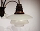 Bombardementskrone i bruneret messing med skærme af mat glas af Poul Henningsen og Louis Poulsen, fra 1930erne.
