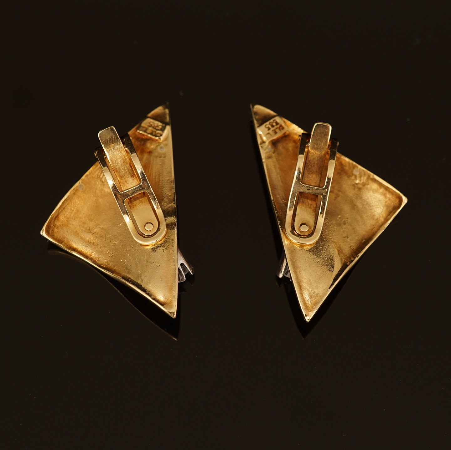 Ole Lynggard, Denmark: A pair of earrings with diamonds. 14ct gold. Size: 3,5x2cm. W: 12,4gr