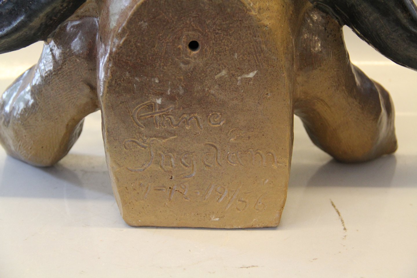 Danish Art Pottery Huge Buffalo's head 26 x 49 x 32 cm Signed Arne Ingdam 1/12 1956