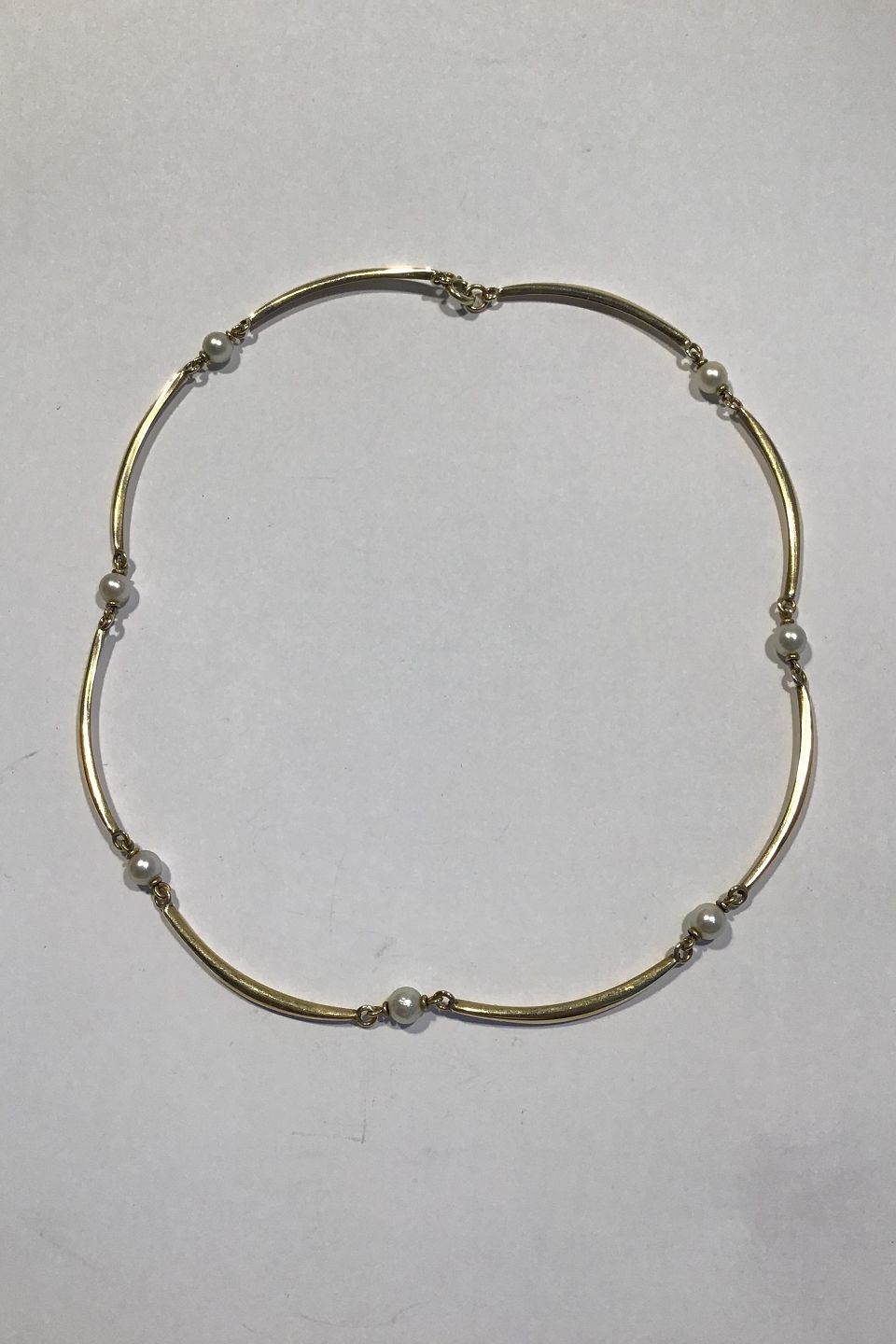 Guldhalslænke 14 kt 8 stk. Letbuede stave adskilt af perleled
