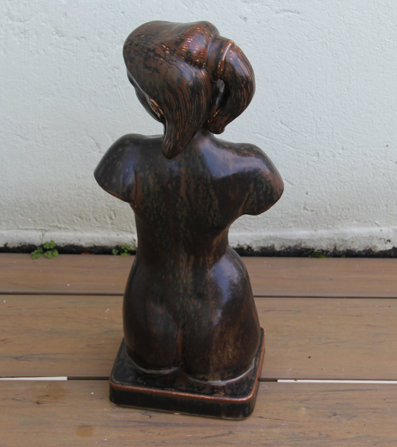 Beskrivelse: Stor Royal Copenhagen stentøj Kvindetorso 21095 Kgl. "Karina" ca 80 cm, JH, juli 1951 I fin og hel stand Johannes Hedegaard med den flotte Dilou glasur af C.F. Ludvigsen Så absolut et af Johannes Hedegaards hovedværker Begrænset oplag nr 3 af 5