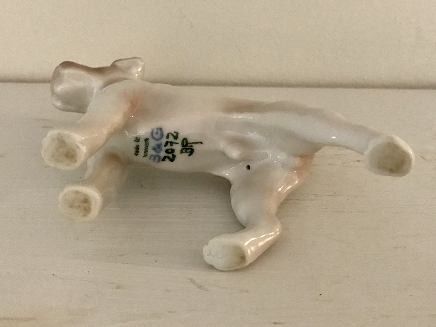 Beskrivelse: Bing & Grøndahl, Foxterrier #2072, 11cm bred, 1.Sortering, Design Laurits Jensen *Perfekt stand*