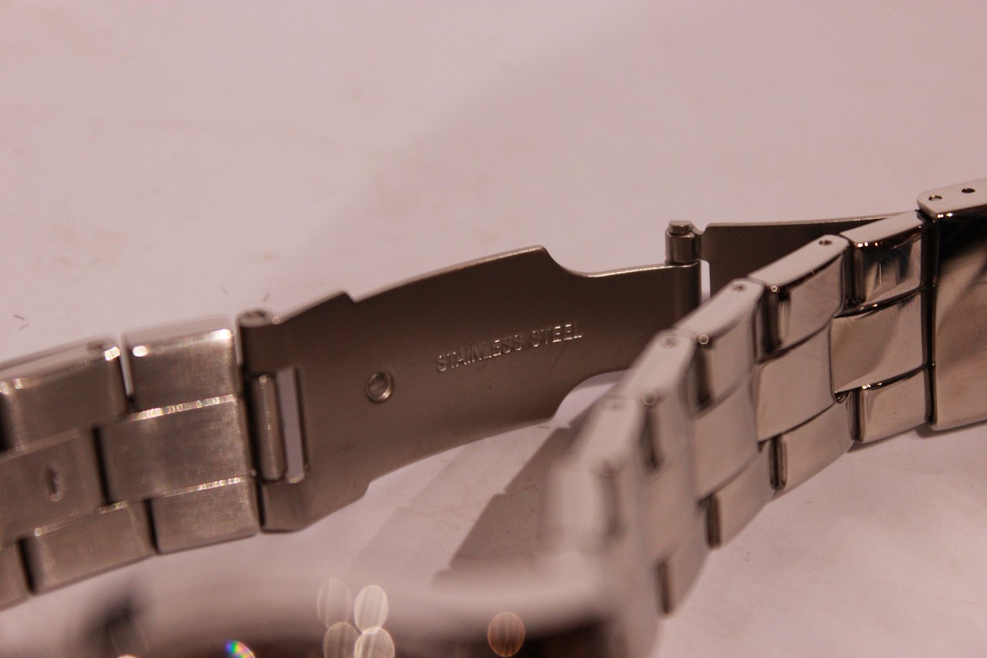 Description: Mens quartz wristwatch of stainless steel by Guess, in perfect condition.