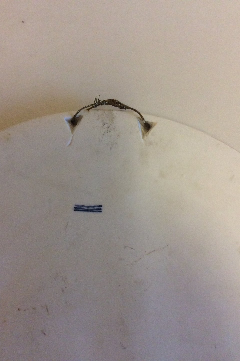 Beskrivelse: Bertel Thorvaldsen: Kæmpe Royal Copenhagen Biscuit Platte "Juleglæde i Himlen" No 111. Kopi fra 1843 af Chr. Christensen efter Thorvaldsens original fra Nysø 1842. Tidlige stempler
