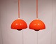 Et par Flowerpot, model VP1, pendler i orange designet af Verner Panton i 1968 og fremstillet i 1970erne.