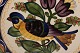 Rund fajance skål med fugl dekoreret i forskellige farver