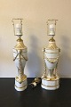 Royal Copenhagen Et sæt på to balusterformede lamper på sokkel dekoreret med guillander, vædderhoveder og guld. Med Juliane Marie mærke fra 1905-12.