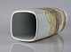 Beskrivelse: Høj kantet vase i fajance fra Royal Copenhagen fajance nr. 962/3764, Baca. Design af Ellen Malmer