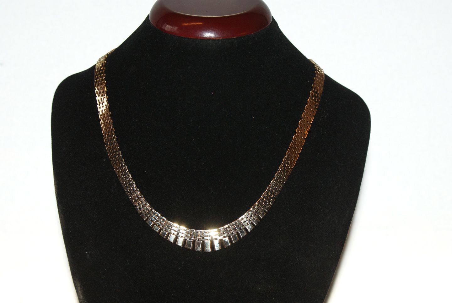 Beskrivelse: Mursten Halskæde med forløb 7 Rækker, 14 Karat Guld