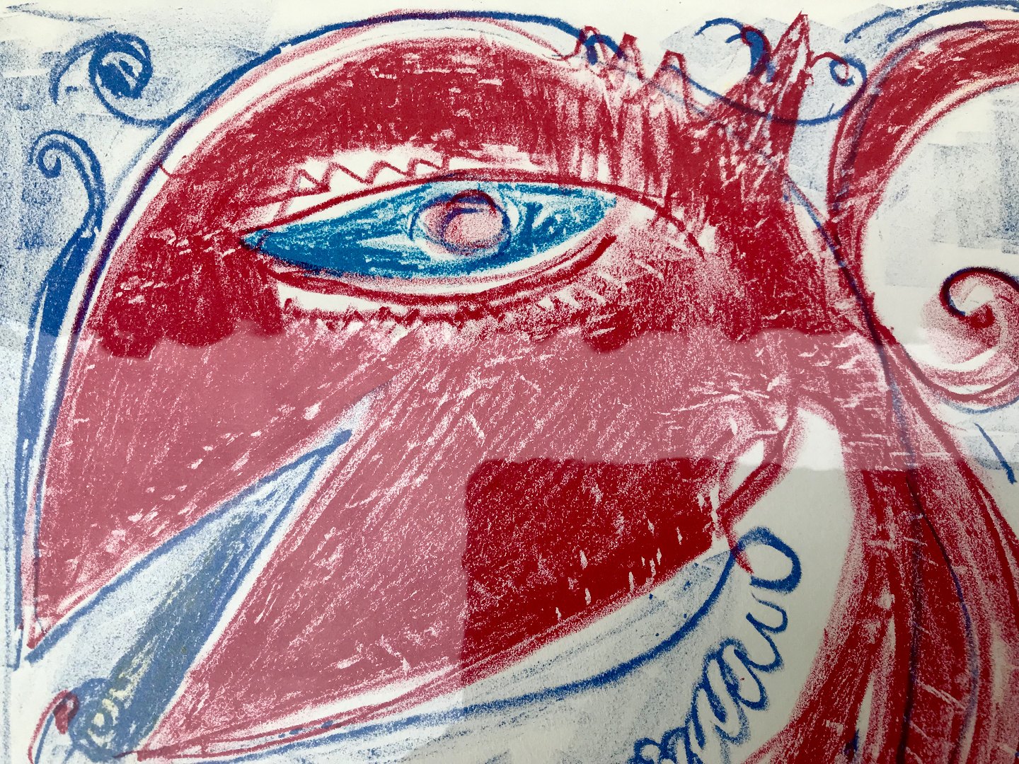 Fantasiens Slot. 12 litografier. Tekst af Gunnar Jespersen. 1 udgave fra 1968, 66 sider. Dette eksemplar nr. 113 af 500 nummererede og signerede eksemplarer. Der er en rift i det klare plastomslag, men ellers er bogen i rigtig fin stand.