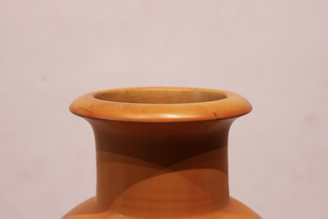 Stor gulvase i mørkegul af Herman A. Kähler.