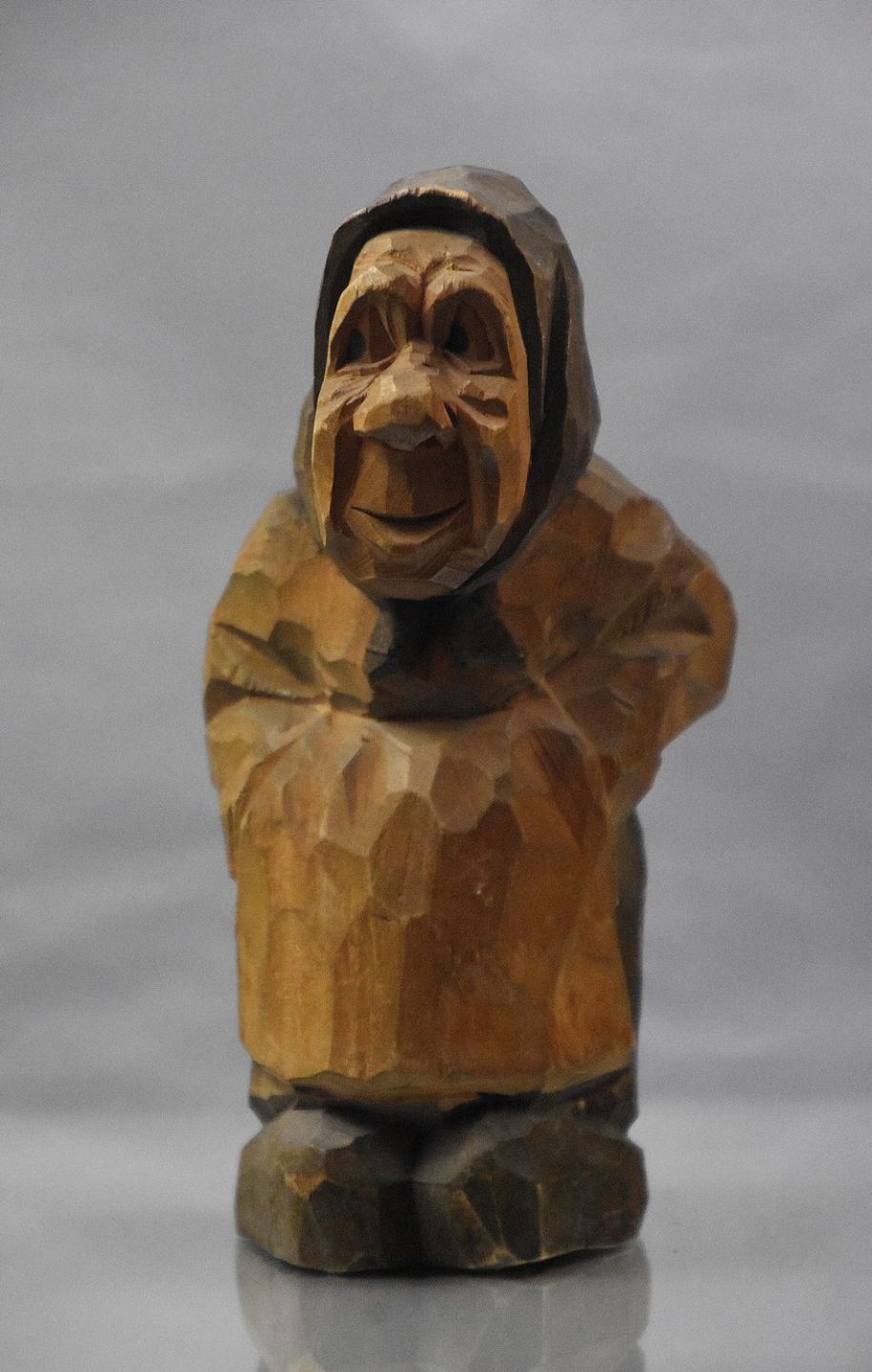 : Håndsnittet Gammel dame, kvindelig træfigur.